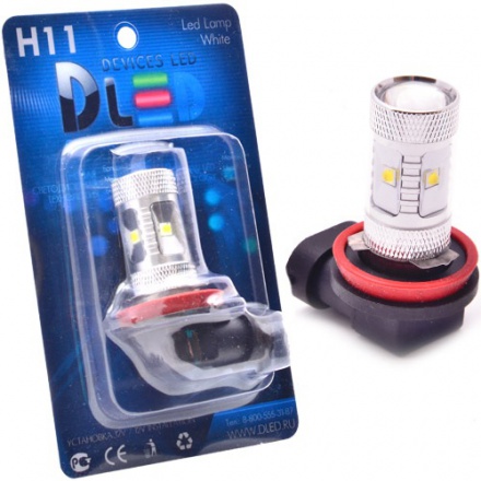 Светодиодные лампы с г-образным цоколем H11 подходят в противотуманные фары в линзованную блок фару. Напряжение у них 12 вольт под легковой автомобиль вставляются в штатное посадочное место без каких либо блоков питания. Заказать светодиодные автомобильные лампы DLED H11 - 6 Epistar HP в интернет-магазине в Москве.